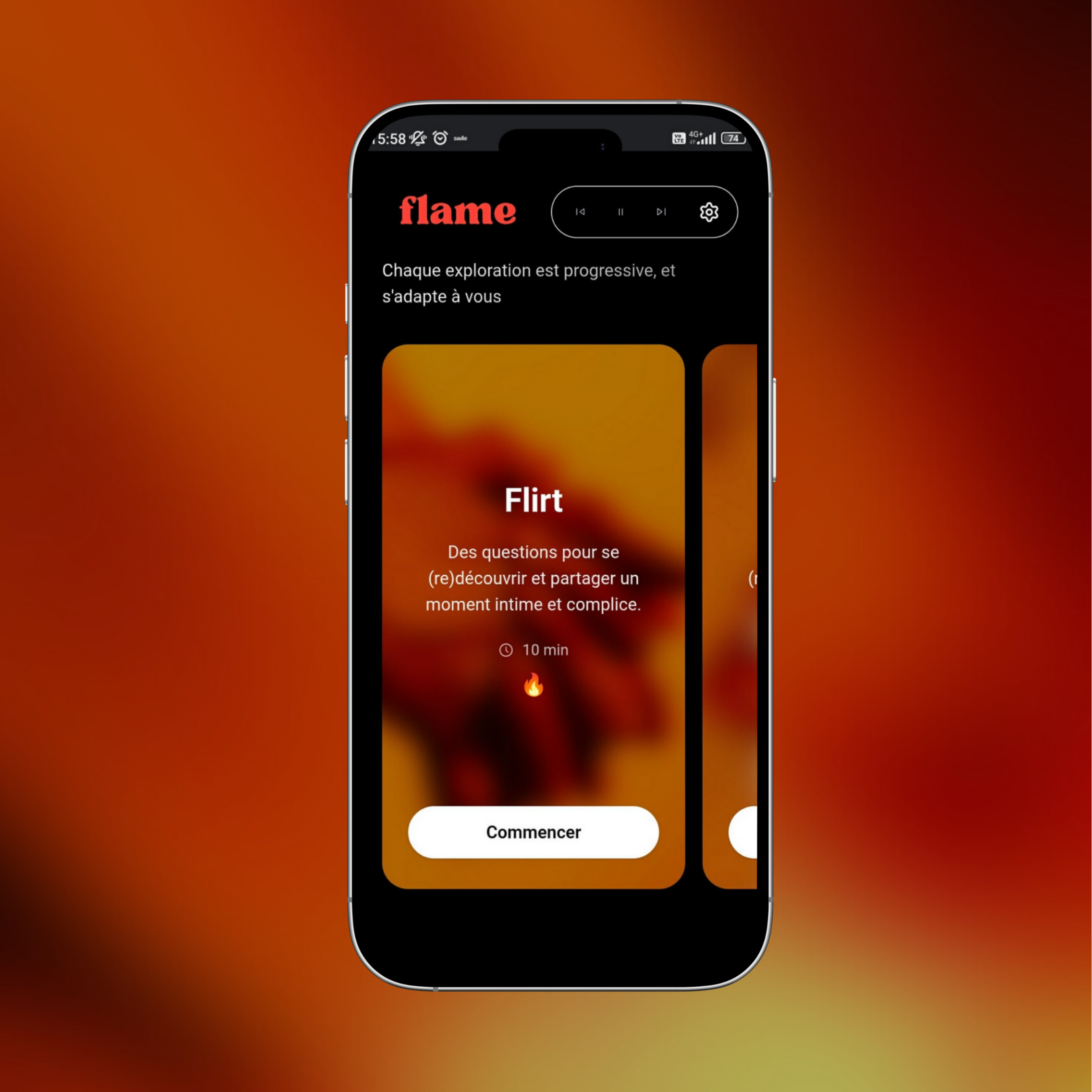 Conçue pour guider chaque couple dans une (re)découverte authentique de leur complicité, l’application immersive favorise le dialogue, l’émotion et la connexion, sensorielle et sensuelle.